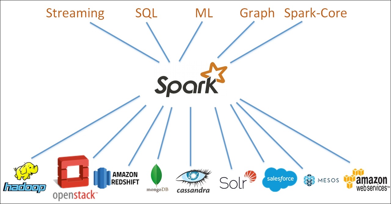 기존 Hadoop 위에서 돌아가던 ML library, Mahout이나 real-time streaming data를 처리하기 위한 Storm 등, 다양한 툴에 대해, 2014년에 나온 Spark는 위의 다양한(50+) 기능을 자체적으로 처리 가능하다.
