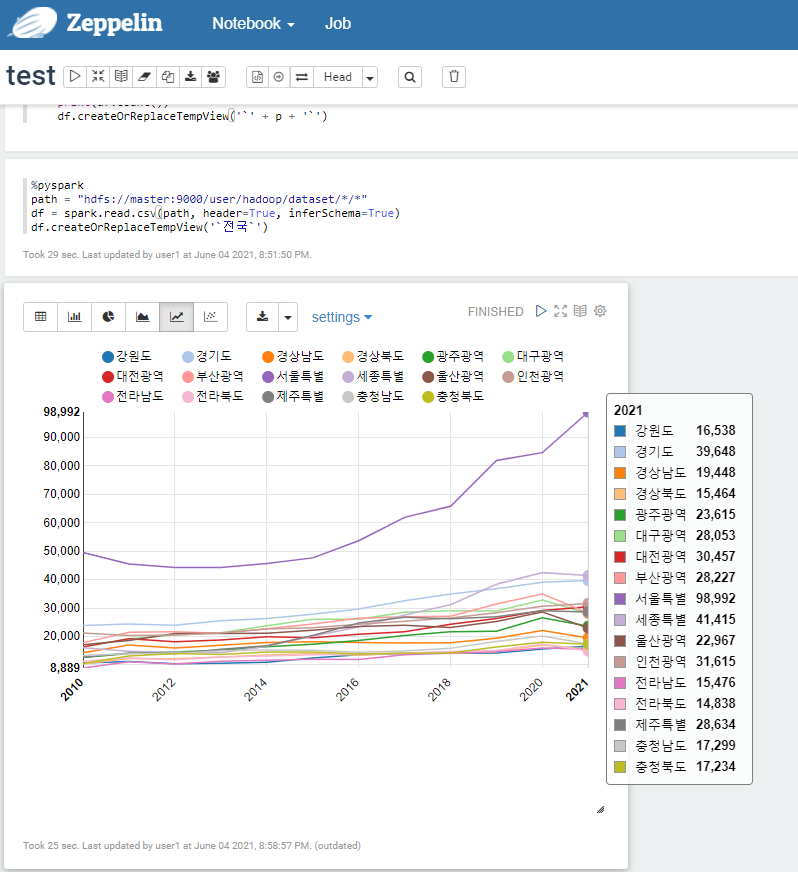 - 집값 추이에 대해 Zeppelin으로 시각화 테스트