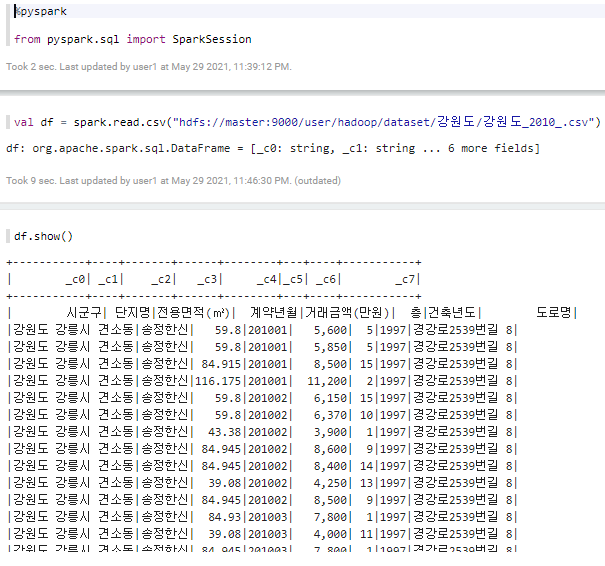 - DataFrame은 paragraph간 공유가 된다.(하지만 paragraph interpreter는 같아야함)