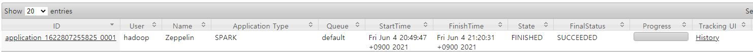 Hadoop clustering → Spark Processing(yarn mode) → Zeppelin 시각화 까지 진행하기 위한 환경 구축 완료.